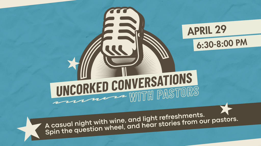 UNCORKED CONVERSATIONS WITH THE PASTORS: April 29 from 6:30 -8:00 PM