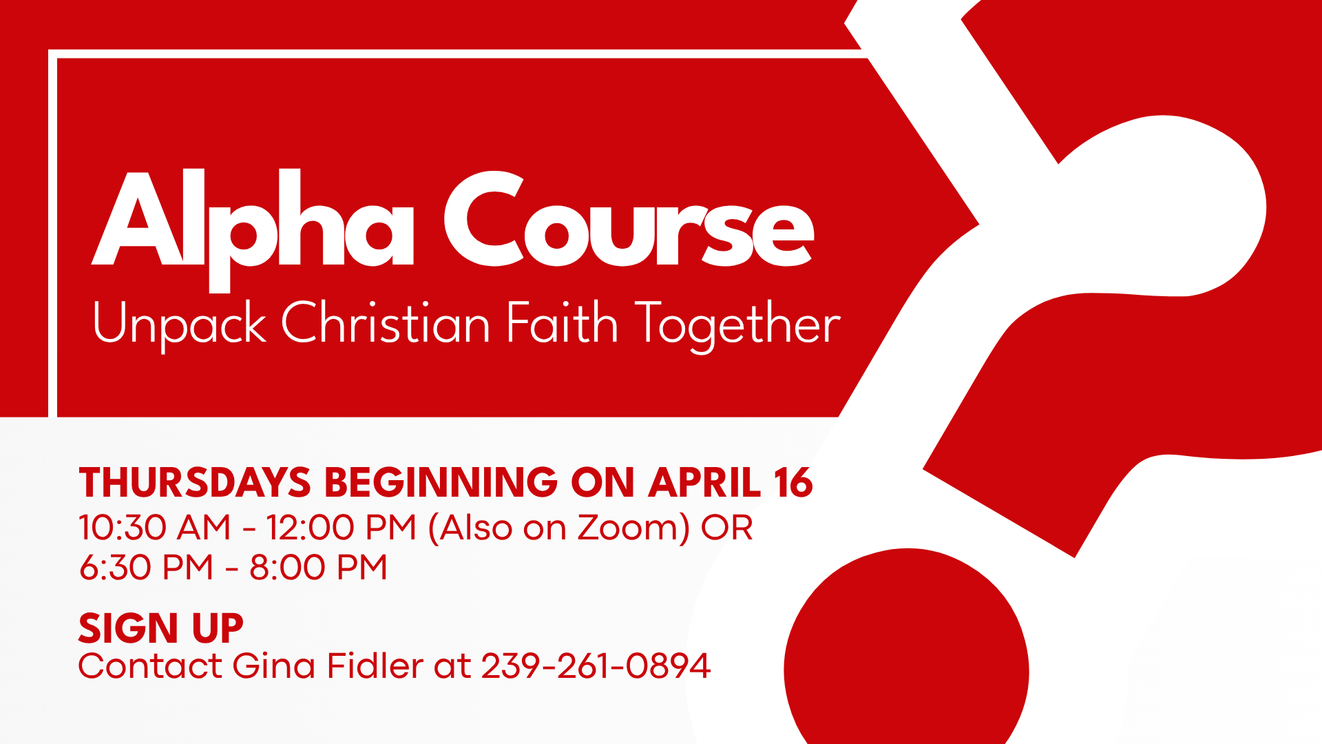 You’re invited to a new bible study class beginning on Thursday, April 16th at 10:30 AM and 6:30 PM. Looking for a place to ask questions and explore faith? Alpha is a casual, welcoming series where you can talk about life, faith, and meaning in a relaxed setting. Come as you are—no pressure, no expectations. If you are are out of town, you can join us on Zoom.