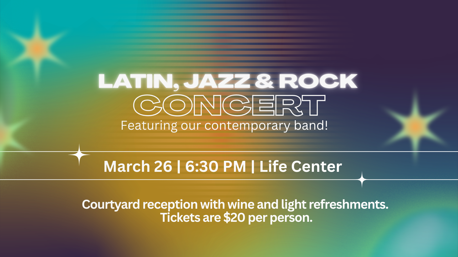 Join us on March 26 in the Life Center for an energetic evening of Latin, jazz, and rock, featuring our contemporary band along with special guest performers.