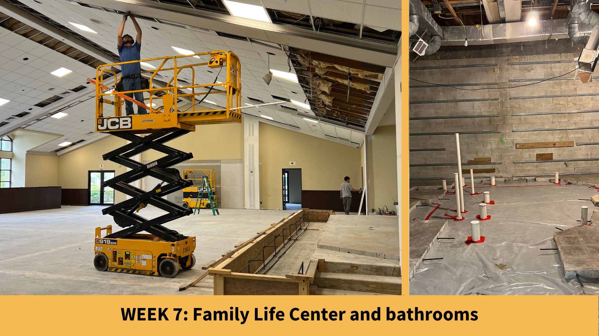 FAMILY LIFE CENTER RENOVATION UPDATE - Progress continues in the Family Life Center as we move in and out of the 7th week.