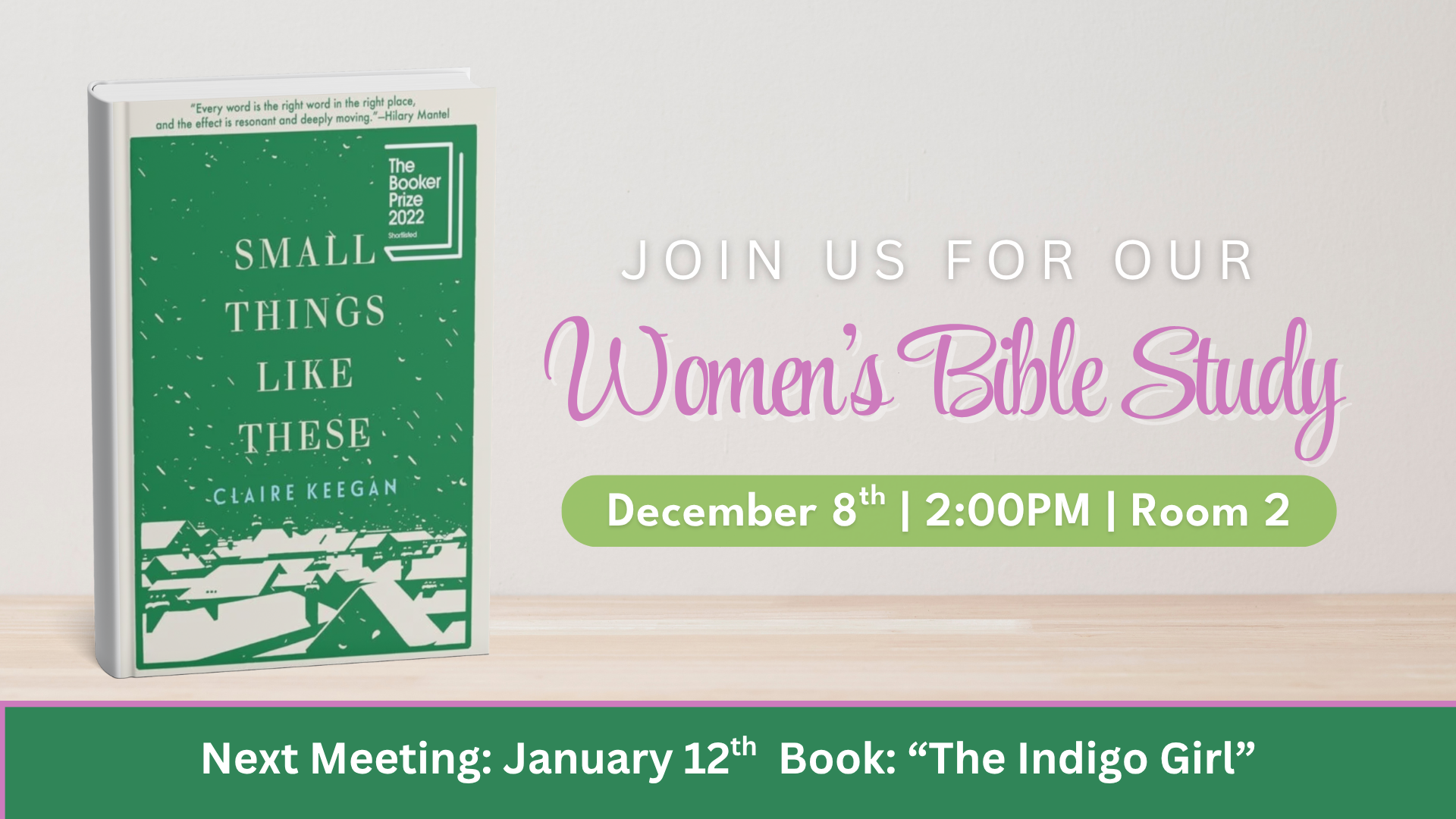 Join the book club on Monday, Dec. 8th as they discuss “Small Things Like These” by Claire Keegan. This book is a short novel about coal merchant Bill Furlong in a small Irish town in 1985 who, while on a Christmas delivery, discovers a young woman being held and exploited at the local convent. The discovery forces him to confront his past, the complicit silence of his community, and the moral question of whether to intervene, leading him to perform a quiet act of heroism inspired by the real-life history of the Magdalene Laundries.